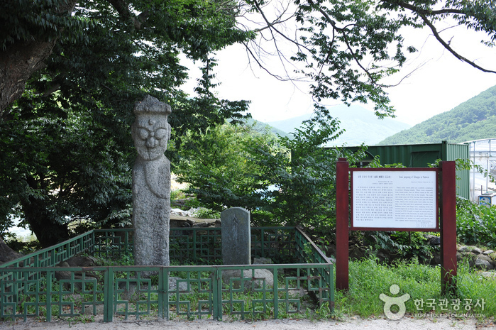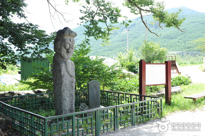 ÀÌ µ¹Àå½ÂµéÀº ½Ç»ó»ç¸¦ ÁöŰ´Â »ó¡ÀûÀÎ Á¶°¢Ç°À¸·Î, ¿ø·¡´Â ÀÌ °÷ ³Á°¡¿¡ ¸ðµÎ ³× °³°¡ ÀÖ¾ú´Ù. Àý·Î °¡´Â µµÁß ³»¸¦ °Ç³Ê±â Àü¿¡ µÎ °³ÀÇ Àå½ÂÀÌ ¼­ ÀÖ¾ú´Âµ¥, ±×Áß ¿À¸¥ÂÊ °ÍÀÌ 1936³â È«¼ö¿¡ ¾µ·Á ³»·Á°¡ ÇöÀç´Â ¼¼ °³¸¸ ³²¾Ò´Ù. Àå½ÂµéÀÇ ³ôÀÌ´Â ´ë·«2.5¡­2.9m, ³Êºñ 40¡­50cm °¡·®À̸ç, ¸Ó¸®¿¡ ¸ðÀÚ¸¦ ¾²°í Æ¢¾î³ª¿Â µÕ±Ù ´«¿¡ ÁÖ¸ÔÄÚ¿Í Ä¿´Ù¶õ ±Í¸¦ °®´Â µî ºñ½ÁÇÑ ¾ç½ÄÀ» º¸ÀδÙ. Àå½Â¿¡ »õ±ä ±â·ÏÀ¸·Î º¸¾Æ, °°Àº ½Ã±âÀÎ Á¶¼± ¿µÁ¶ 1³â(1725)¿¡ ¼¼¿î °ÍµéÀÓÀ» ¾Ë ¼ö ÀÖ´Ù. Àå½ÂÀº º¸Åë ³²³à·Î ¹èÄ¡ÇØ À½¾çÀÇ Á¶È­¸¦ ²ÒÇϴµ¥, ÀÌ °÷ Àå½ÂÀº ¸ðµÎ ³²ÀÚ ÇüÅÂÀÌ´Ù. ±Í½ÅÀ» ÂÑ´Â Àå½ÂµéÀÇ Ç¥Á¤ÀÌ Çè»ó±Ä±â´Â Ä¿³ç ¿ÀÈ÷·Á Àͻ콺·´°í ÇØÇÐÀûÀÌ´Ù.