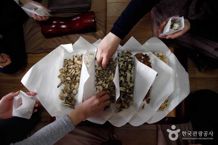 Èú¸µ¾ÆÄ«µ¥¹Ì ¸¶Áö¸· ÄÚ½º´Â µ¿ÀǺ»°¡ Çѹæ üÇèÀ¸·Î, µ¿ÀǺ¸°¨ÃÌ¿¡¼ ƯÈ÷ ¹ÝÀÀÀÌ ÁÁ´Ù. µ¿ÀǺ»°¡¿¡¼´Â Àå¼ö ºñ°á üÇè, ¾àø ¸¸µé±â, ¾àÃÊ ½ºÆÄ µîÀ» üÇèÇÒ ¼ö ÀÖ´Ù. Àå¼ö ºñ°á üÇèÀº ¡¶µ¿ÀǺ¸°¨¡·¿¡ ¼Ò°³ÇÑ Àå¼ö ºñ¹ý¿¡¼ Â÷¿ëÇß´Ù. Á÷Á¢ ¾àÃʸ¦ °ñ¶ó º£°³¿¡ ³Ö°í, ¿Õ¶äÀ» ¶ß¸ç ´©¿ö¼ ½®´Ù. ¼ö¸éÀ» °âÇØµµ ¹«¹æÇÏ´Ù. Àá±ñ Á¹°í ³ª¸é ÇÑ°á »óÄèÇÏ´Ù. ¾àÃÊ Çâ±â ÁָӴϳª ¾àøÀ» ¸¸µå´Â üÇèµµ Àç¹Ì³ª´Ù. ¾àÃÊ Çâ±â ÁÖ¸Ó´Ï´Â ¼÷¸éÀ̳ª ºñ¿° µî¿¡ ÁÁÀº ÇѾàÀ縦 ó¹æ¹Þ¾Æ º¹ÁÖ¸Ó´Ï¿¡ ´ã´Â´Ù. ¾àø ¸¸µé±â´Â ½ÊÀü´ëº¸ÅÁÀ̳ª ½ÖÈÅÁ µîÀÇ ¾àÀ縦 ¾àøÀ¸·Î ½Îº¸´Â üÇèÀÌ´Ù.