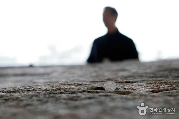 ±Í°¨¼® À§ÂÊ ±â½¾¿¡´Â ¼®°æ(à´Ìð)ÀÌ ÀÖ´Ù. ¹«°Ô 60tÀÇ µ¹ °Å¿ï·Î, ¿ìÁÖ ¸¸¹°ÀÇ ÀÌÄ¡¸¦ ÀûÀº õºÎ°æ 81ÀÚ¸¦ »õ°å´Ù. ¼®°æÀº µ¿ÂÊÀ» ÇâÇϰí ÀÖ¾î ÀÏÃâÀÇ ±â¿îÀ» ±×´ë·Î ¹Þ¾ÆµéÀδÙ. ¼®°æÀÇ µ¹»Ñ¸®¿¡ ¸Ó¸®¸¦ ´ë¸é ÇØÀÇ ±â¿îÀÌ ÀüÇØÁø´Ù. ±âõ¹® ¿À¸¥ÂÊ º¹¼®Á¤¿¡´Â °Å´ëÇÑ ¹ÙÀ§ Çϳª°¡ ´©¿ö ÀÖ´Ù. º¹À» ´ã´Â ±×¸©À̶ó´Â ¶æÀ¸·Î, ¹ÙÀ§ À§¿¡ µ¿ÀüÀ» ¼¼¿ì°í º¹À» ±â¿øÇÏ´Â À̵éÀ» º¼ ¼ö ÀÖ´Ù.